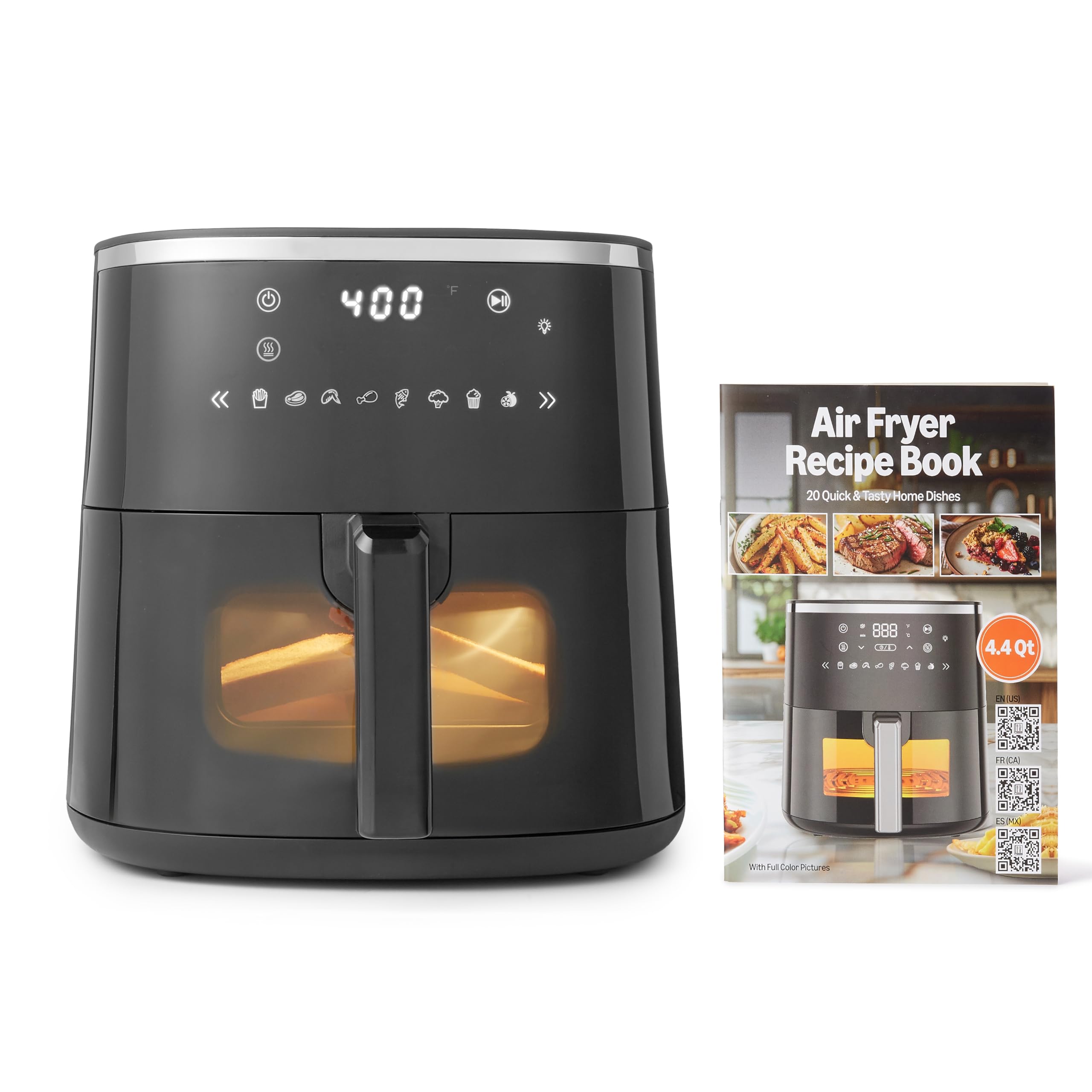 Amazon Basics 4.4-Quart Air Fryer with Easy View Window, 8 Preset Menus, 1400W, Black New Model 4 QT